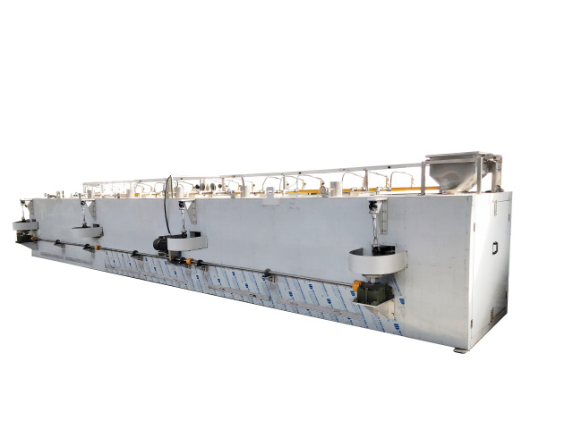全自動平(píng)麵回轉烤爐主要用於堅果炒貨(huò)及籽類產品裹衣裹粉後的烘烤加工。采用(yòng)直燃式加熱方(fāng)式,熱量直接作用於食品上,烘烤香味更濃鬱,並通過設備的(de)搖擺避免食品粘連(lián)變形。具有烘烤口味色澤(zé)優良, 沒有汙染等特點。