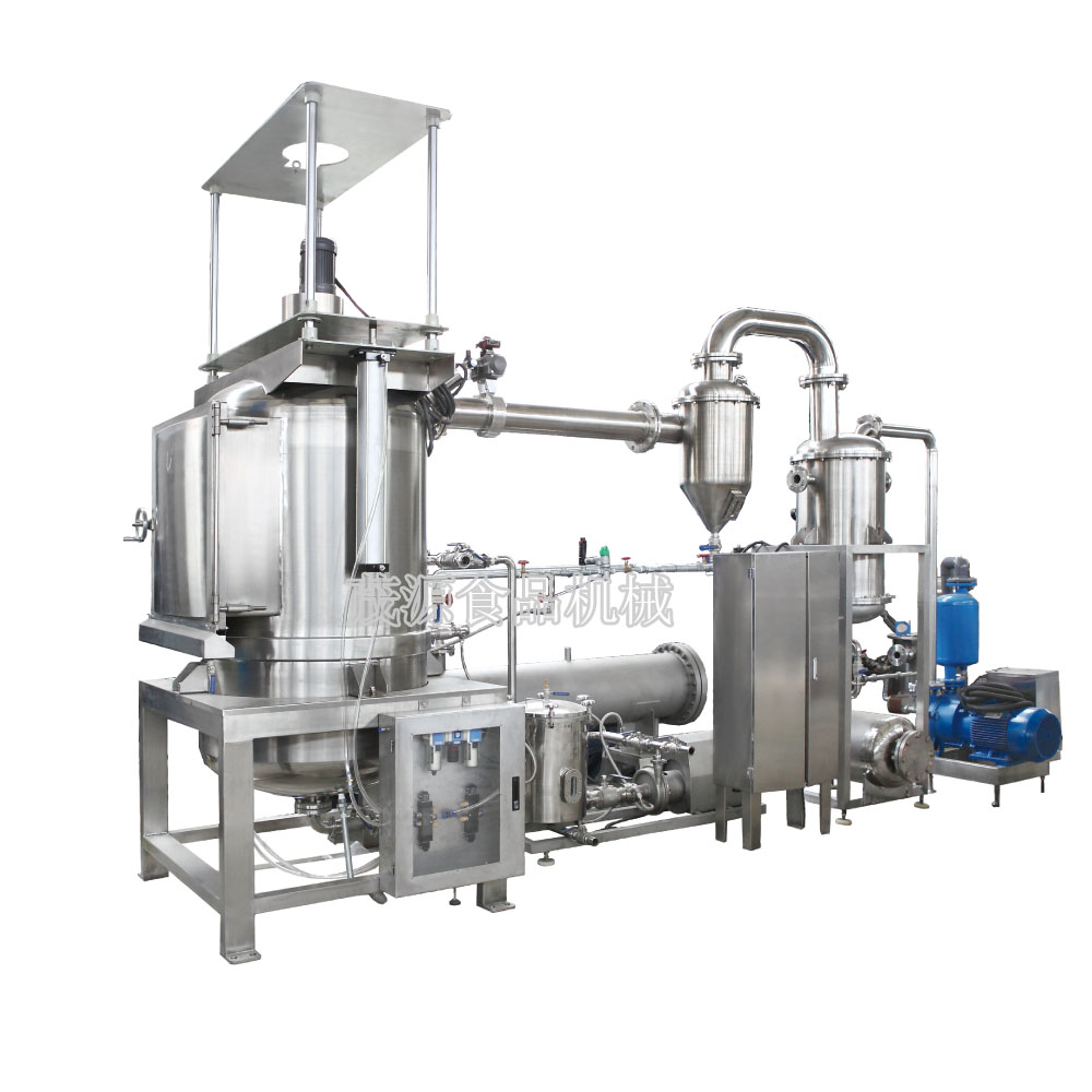 在真(zhēn)空(負壓)的狀態下,食品中的水分汽化溫度降低,真空低溫脫水(shuǐ)機以食用植物油作為傳熱媒介,使食品中的水分急劇蒸發而(ér)噴(pēn)出,從而實現低溫條件下對食品的油炸。